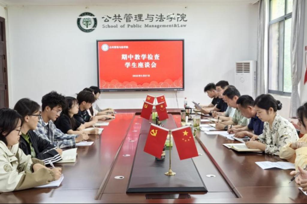 为开展好学校“教学质量月”活动,扎实推进教风、学风建设,不断提升教学质量,5月27日下午,公共管理与法学院在公法楼402会议室召开主题为“贯彻中国共产党安徽工业大学第五次代表大会精神,持续推进深入贯彻中央八项规定精神学习教育,迎评促建,扎实推进教风、学风建设,不断提升学生培养质量”期中教学检查学生座谈会。座谈会由副院长卢成会主持。院党委书记胡正友,党委副书记、纪委书记、副院长周浩然,副院长王务均,院团委负责人钱前,教学秘书夏静,辅导员朱玲及2023级,2024级各专业学生代表共同参与。