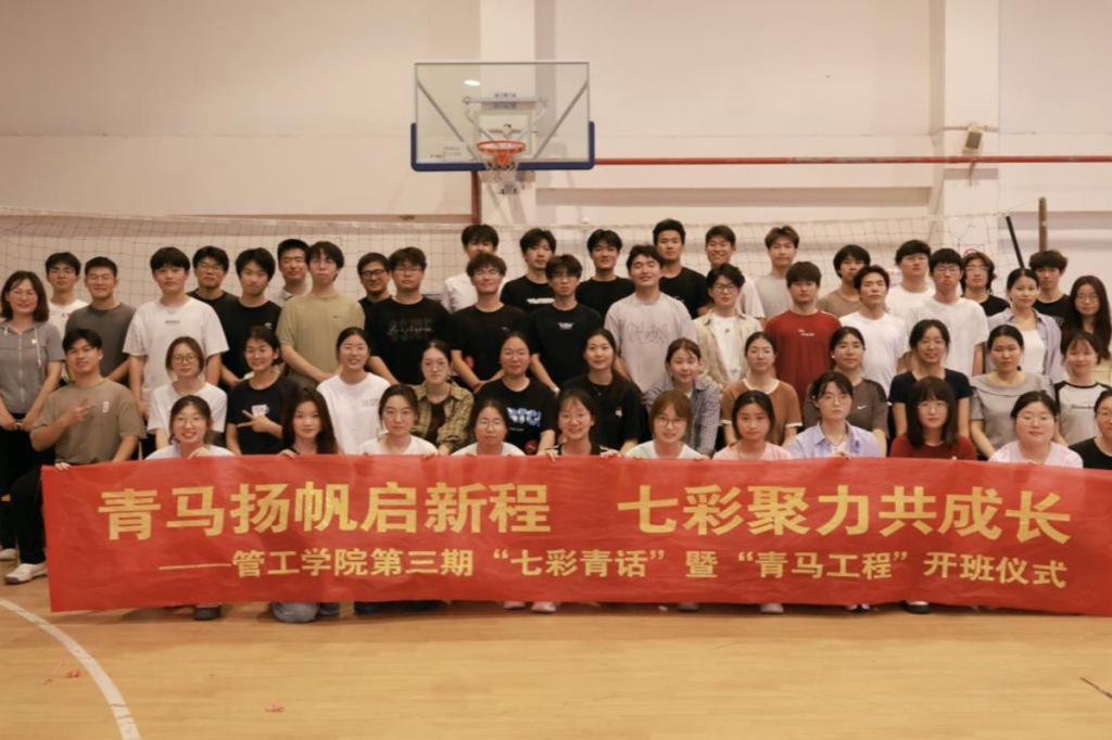 为深化青年马克思主义者培养工程,增强团学组织的凝聚力,5月26日,管理科学与工程学院在秀山校区体育馆及汇文楼A502举办第三期“七彩青话”暨“青马工程”开班仪式。活动由院团委书记赵玉婷主持,院党委书记王军,院党委副书记、纪委书记、副院长赵颖,各年级辅导员代表及“青马工程”学员参加。