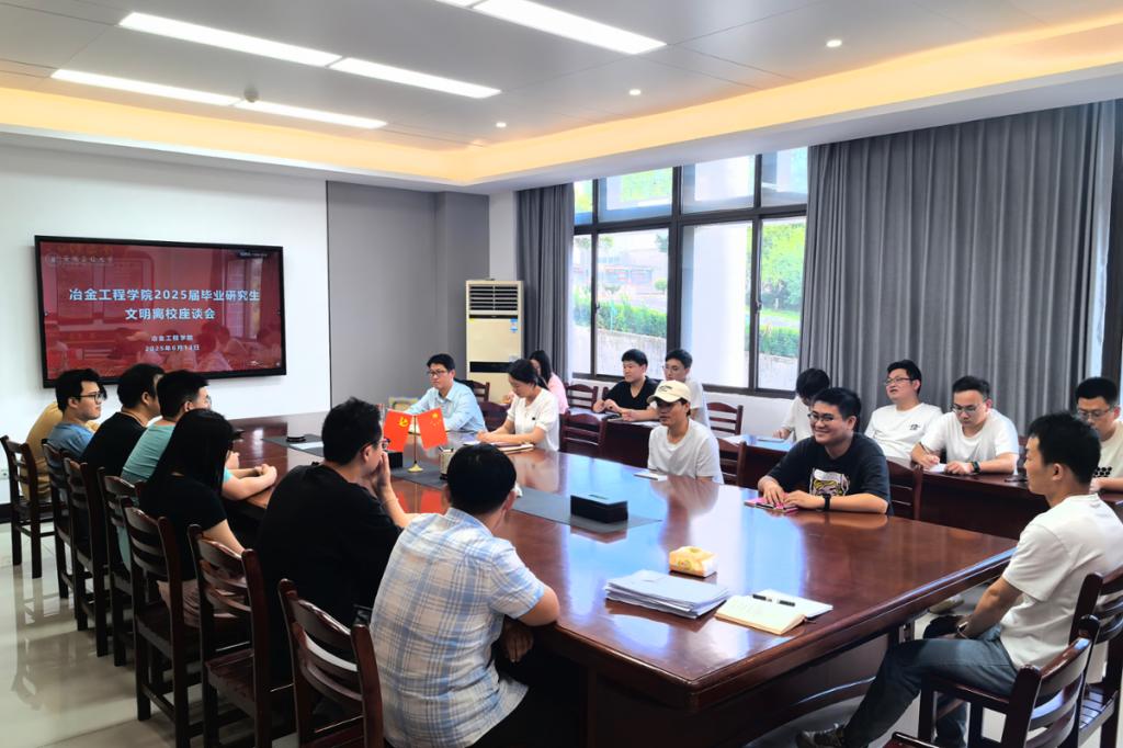 6月13日,冶金工程学院于秀山校区冶金楼南317会议室召开2025届毕业研究生文明离校座谈会。院党委副书记、纪委书记、副院长朱艳飞,副院长赵卓,以及各班级研究生毕业生代表参加了座谈会,座谈会由辅导员吴巍主持。