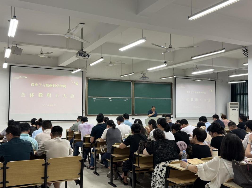 7月3日,微电子与数据科学学院召开2024-2025学年第二学期期末教职工大会,全体教职工参会,会议由党委书记汪春胜主持。