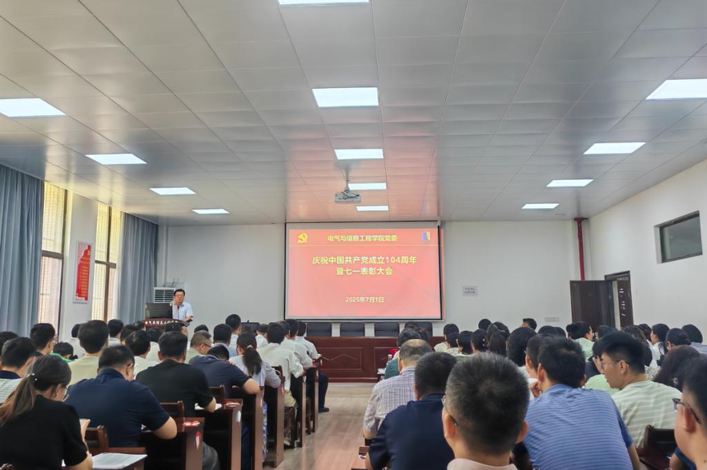 为庆祝中国共产党成立104周年,激励全院党员师生赓续红色血脉、砥砺奋进力量。7月1日,电气与信息工程学院举行庆祝中国共产党成立104周年暨“七一”表彰大会。学院党委领导班子、全院师生党员出席大会,会议由学院党委委员程木田主持。