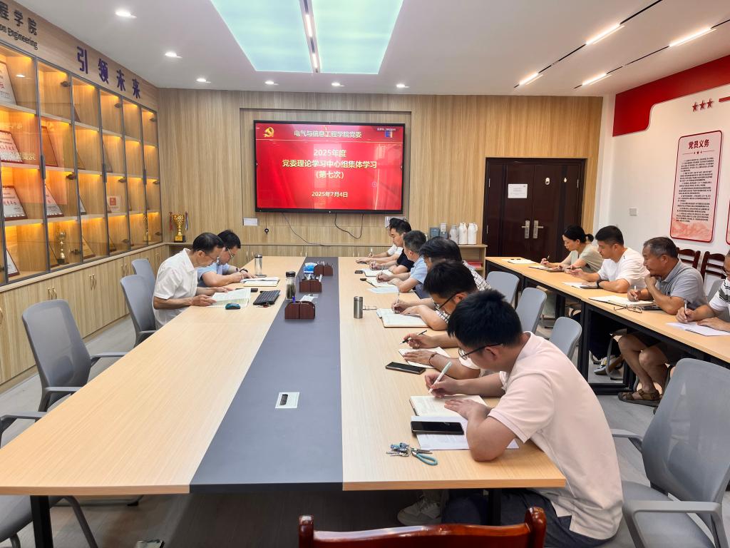 7月4日上午,电气与信息工程学院党委理论学习中心组开展2025年第七次集体学习会,学院党政领导、支部书记和新发展党员代表参加学习,学院党委书记丁忠利主持。