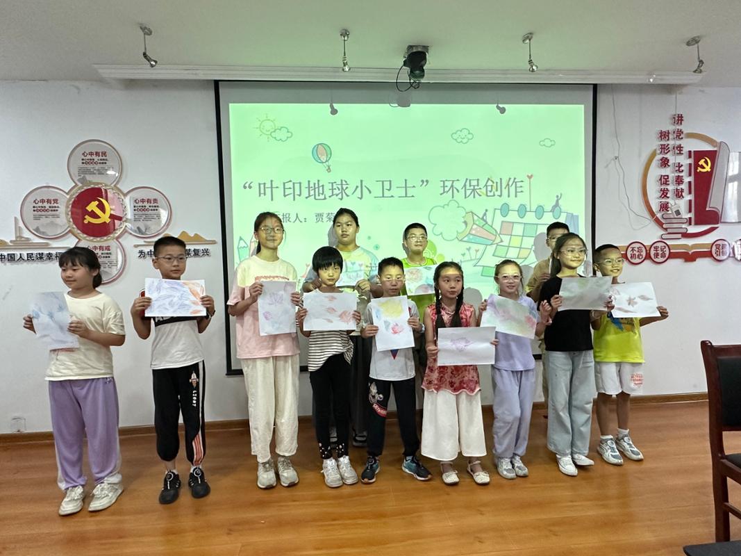 随着最后一片树叶拓印作品的完成,孩子们高举着自己的作品合影留念,灿烂的笑容与五彩的树叶相映成趣。一片片拓印树叶仿佛跳动的绿色音符,奏响着环保的青春乐章。队长贾菊韩在活动总结中说到,这些充满童真的作品不仅展现了孩子们的艺术天赋,更让队员们看到了环保理念在新生代心中逐渐生根发芽。该实践团队表示,他们将继续开展各类环保实践活动,将环保理念传递给更多的人,为建设美丽中国贡献青春力量。(撰稿:范浩东 审核:卫军帅 林颖)
