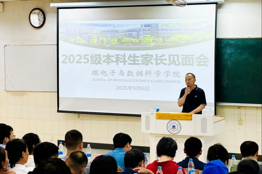 为进一步深化家校协同育人工作实效,9月6日下午,微电子与数据科学学院在阶教101召开2025级新生家长见面会。院党委书记汪春胜、院长杨二光、院党委副书记张敏、副院长李勇,本科专业系主任、辅导员、新生班主任、2025级学生家长参加会议,会议由张敏主持。