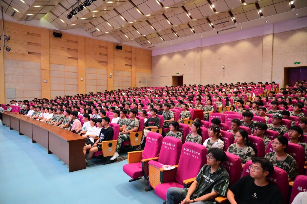 “材料人的第一道工序是淬火,材料学子的第一堂课是军训!”汪盛颜以铿锵有力的动员令拉开大会序幕。他回顾了学院“钢铁育人”传统,结合九三阅兵盛况,用“三种温度”寄语新生:一是保持“信仰温度”,把军人“听党指挥、能打胜仗、作风优良”的血性熔铸成“材料报国”的信念;二是保持“纪律温度”,以“0.1毫米误差零容忍”的标准严格要求自己;三是保持“奋斗温度”,让汗水在烈日下蒸发,让梦想在军旗下升华。汪盛颜强调,军训是大学生活的“第一粒扣子”,希望全体同学端正态度、刻苦训练、安全圆满,用黝黑肤色迎接大学第一份“勋章”。动员结束后,汪盛颜为全体新生作《2025级校纪校规》专题讲座。他结合近年来高校典型案例,围绕请销假制度、考试纪律、宿舍安全、防电诈等方面展开,用“身边事”教育“身边人”。