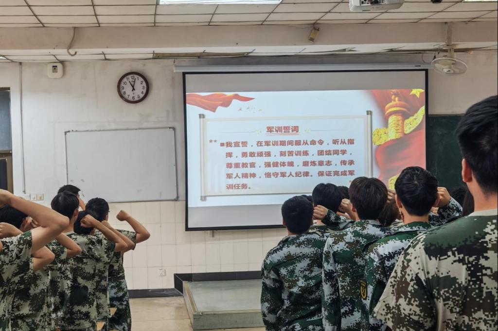 王颖之强调军训是新生锤炼意志、筑牢品格的 “基础工程”,寄语新生要做到严守纪律、强健体魄、传承军风,为未来投身国家基建事业打下坚实基础。随后,新生辅导员黄雨晴就军训相关事宜向新生作具体说明,她强调,军训能帮助新生快速完成从高中生到大学生的角色转变,为后续专业学习与集体生活筑牢根基。最后,大会进入庄严的宣誓环节。全体新生高举右拳,以洪亮的声音庄严宣誓,誓言铿锵有力,回荡在运动场上空,展现出 2025 级新生昂扬的斗志与坚定的信念。