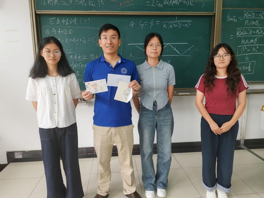 活动一经发起,便得到同学们的积极响应。大家纷纷利用课余时间,发挥创意巧思,精心设计制作匠心独运的专属贺卡,彩纸折叠的立体花朵栩栩如生,画笔绘就的师生共读场景温馨动人,更有同学巧妙地将严谨的数学公式拼组成暖心祝福语……每一张贺卡都凝聚着独特的创意与真挚的心意。光232班王晗在贺卡中郑重写下:“师泽如光,微以致远。您用知识点亮了我的世界,像灯塔指引我前行。漫漫求学路,感恩与您相遇。亲爱的老师,教师节快乐!”质朴的话语,让收到贺卡的吴建光老师感动不已:“这是最珍贵的礼物,孩子们发自内心的感恩跃然纸上。”