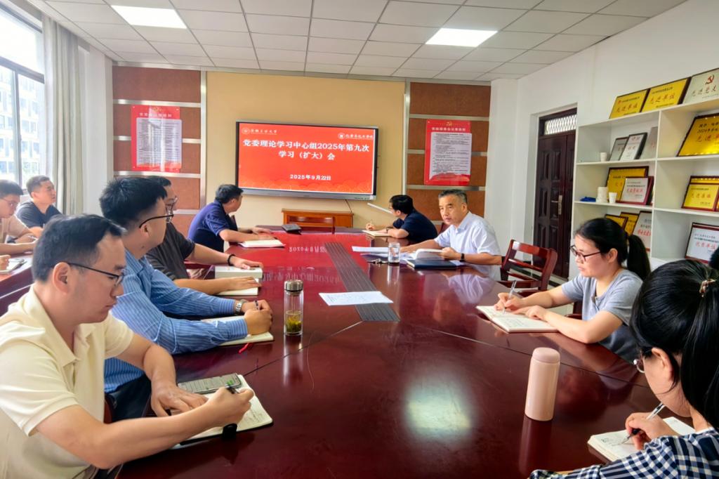 9月22日下午,化学与化工学院党委在学院221会议室召开院党委理论学习中心组2025年第九次学习(扩大)会。学院领导班子成员、党委委员、党支部书记等参加了学习会,院党委书记黄宇弦主持会议。