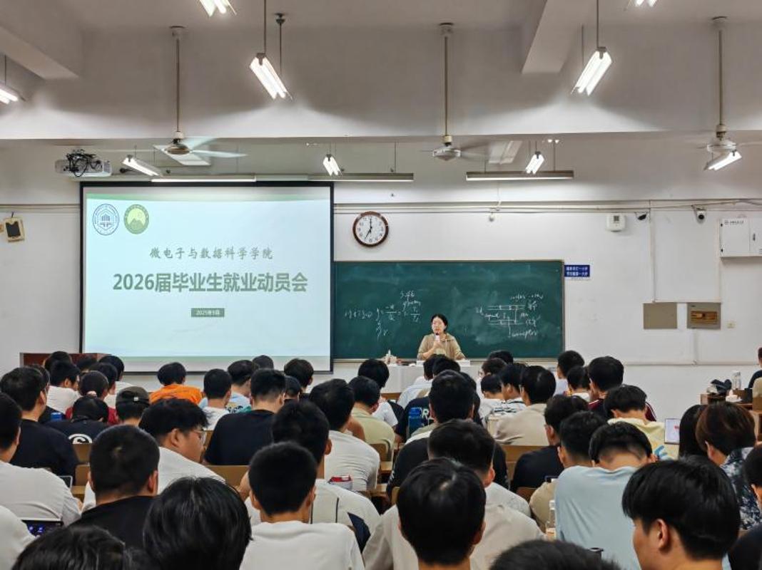 为落实学校就业工作部署,精准对接学院2026届毕业生求职需求,近期,微电子与数据科学学院在教北505召开2026届毕业生就业动员大会。学院党委副书记、纪委书记、副院长张敏,毕业班辅导员及全体2026届毕业生参会,会议由王婉琛主持。