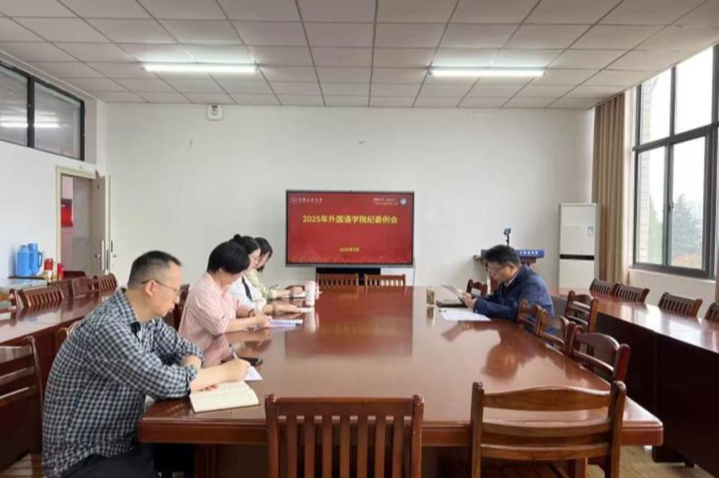 9月26日上午,外国语学院纪委在第一教学楼407会议室召开了2025年院纪委全体会议。会议由学院党委副书记、纪委书记、副院长施铜兴主持,纪委委员周家春、刘菱馨、赵萌菲、刘晓慧参加了会议。
