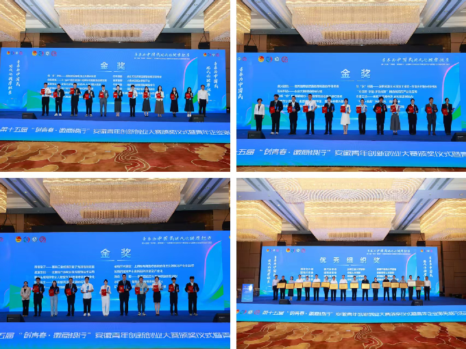 9月25日至26日,由团省委、省工信厅、省人力资源社会保障厅、省农业农村厅、省商务厅、省卫健委、省税务局、省学联共同主办的第十五届“创青春·徽商银行”安徽青年创新创业大赛决赛在芜湖市举办,团省委书记陈明生出席颁奖仪式并讲话。我校共推送了46件作品进入省赛,5件作品入围省赛决赛,经过激烈角逐,最终荣获金奖1项,银奖4项,学校获得“优秀组织奖”。