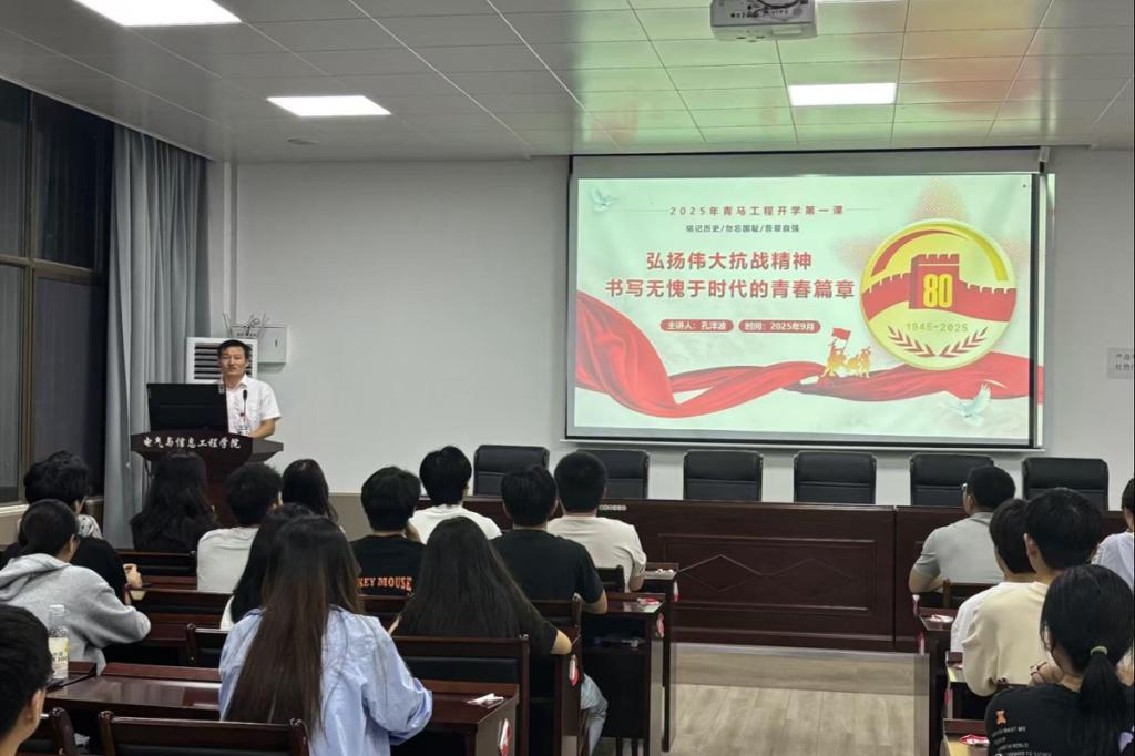 9月29日晚,电气与信息工程学院在秀山校区电气楼113报告厅举办青马工程新学期“开学第一课”。学院党委副书记、纪委书记、副院长孔洋波以“弘扬伟大抗战精神、书写无愧于时代的青春篇章”为主题,为全体“青马工程”学员授课。学院辅导员甘如美江、蒋安东、“青马工程”学员及全体学生会干部共同参加学习。