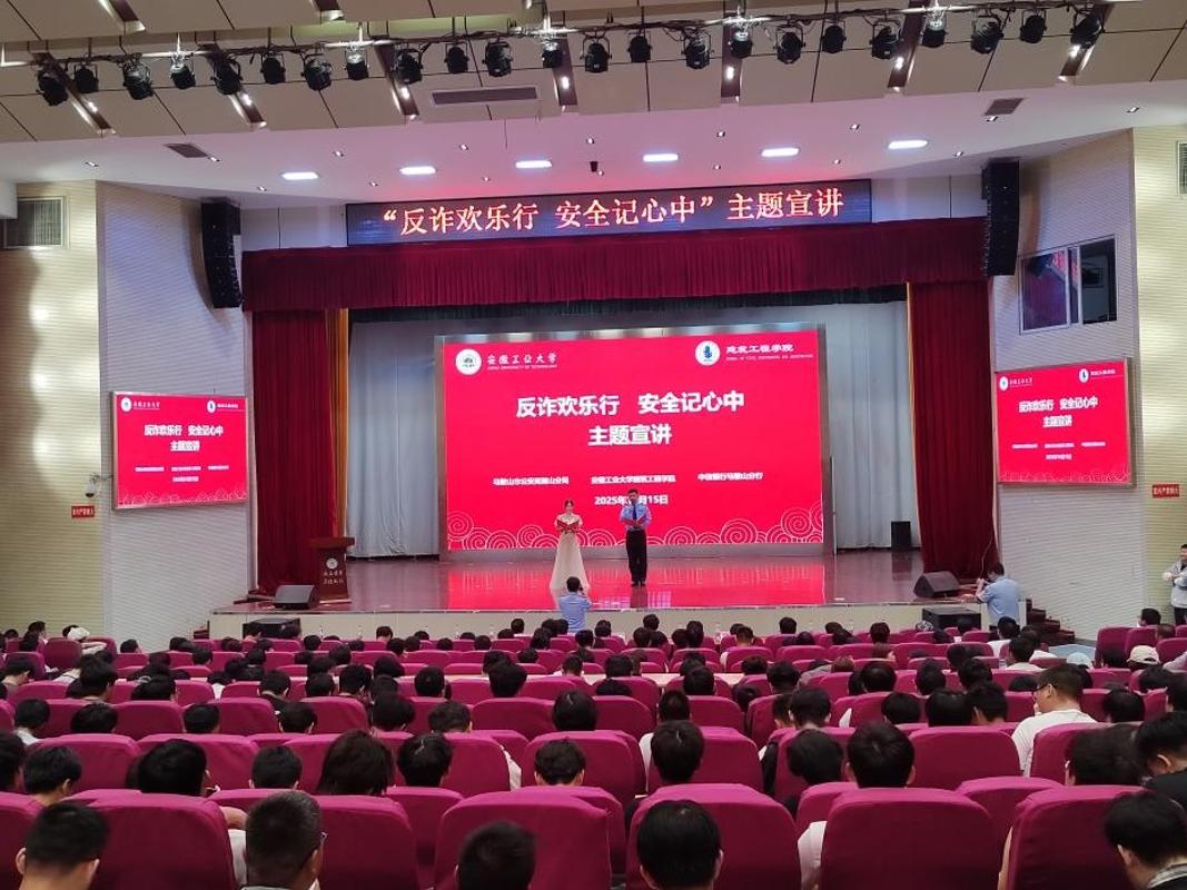 10月15日,建筑工程学院联合雨山公安分局于新大学生活动中心报告厅开展“反诈欢乐行、安全记心中”主题宣讲。建筑工程学院党委书记张虎,学生工作部副部长俞超,安全保卫部副部长李庆宁,建筑工程学院党委副书记、纪委书记、副院长王颖之,雨山公安分局党委委员、政工室主任鲍盛,雨山公安分局环食药大队大队长司义文,建筑工程学院全体辅导员、学生代表共四百余人参加活动。