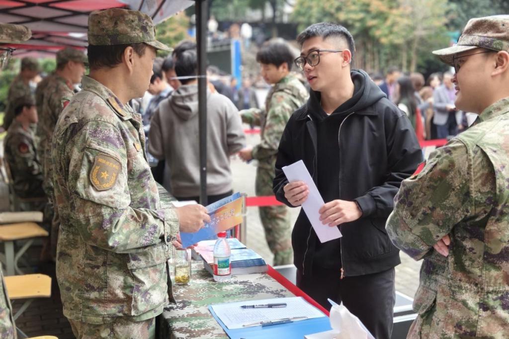活动现场,迷彩帐篷与征兵展板交相辉映,宣传手册与政策解读同步推进。由人武部专武干部与学校迷彩宣讲团组成的宣传队伍,系统介绍大学生征兵政策,涵盖报名条件、流程安排、优待措施及职业发展路径。退役大学生士兵“以身边人讲身边事”,分享军旅经历与成长感悟,耐心解答部队生活、学业衔接、退役发展等实际问题,激发学子投身强军实践的责任感与荣誉感。