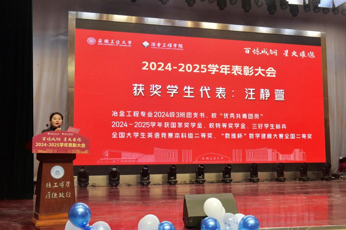 12月8日晚,冶金工程学院2024—2025学年表彰大会在秀山校区新大学生活动中心举行。校党委常委、副校长郑利平出席并讲话,学生工作部(处)部(处)长、大学生就业创业指导中心主任赵龙,研究生院(研究生工作部)院(部)长、学科建设处处长龙红明,教务处处长、招生办公室主任孔辉,学院领导班子成员,系、室(中心)主任,党支部书记、全体辅导员及师生代表共500余人参加了本次大会。