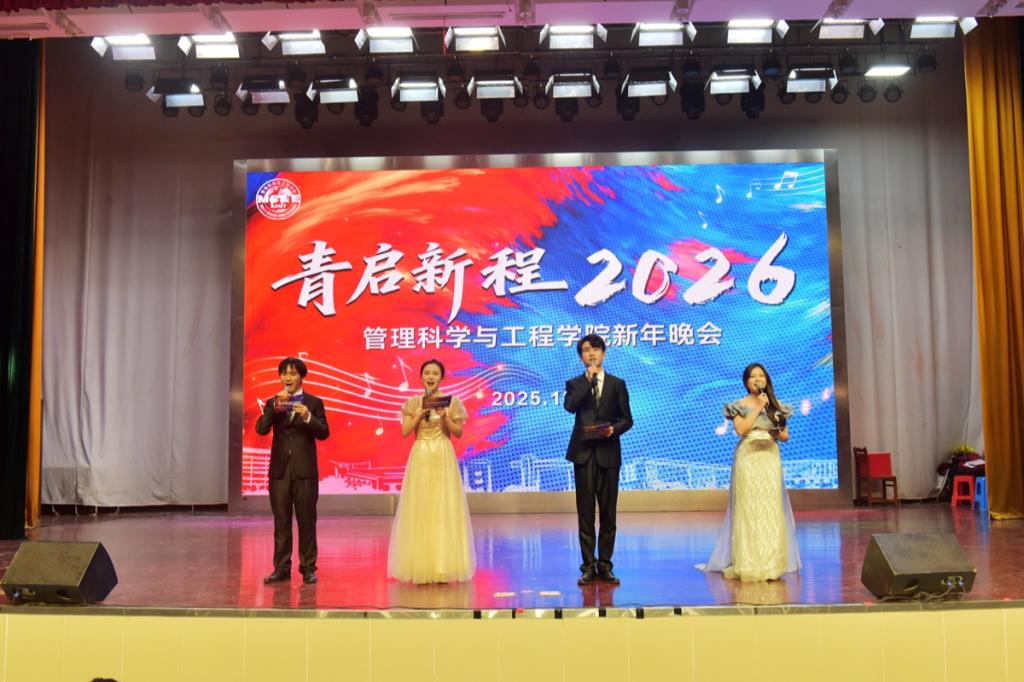 12月30日晚,管理科学与工程学院在秀山校区大学生活动中心报告厅举办“青启新程2026”新年晚会暨迎新晚会。学院党政领导班子,各系室主任,支部书记,教师代表、全体辅导员老师及各年级学生代表等共500余人参加晚会。