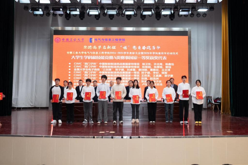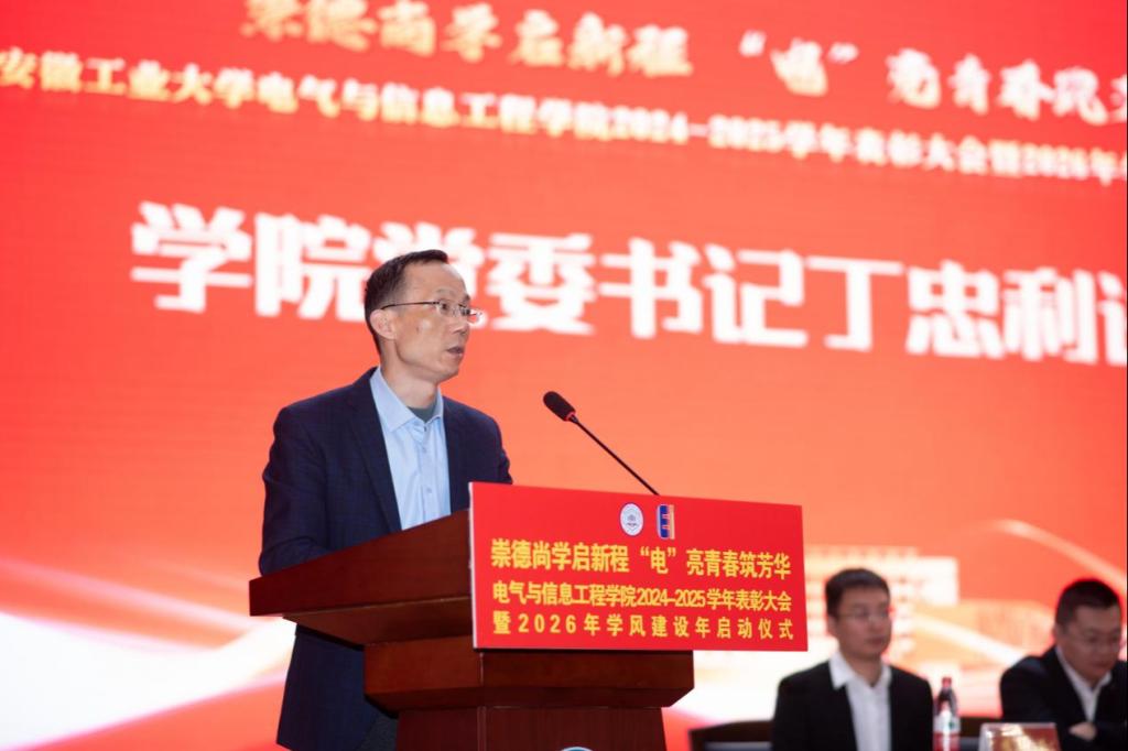 12月31日下午,电气与信息工程学院以“崇德尚学启新程,‘电’亮青春筑芳华”为主题,在秀山校区新大学生活动中心报告厅举办2024-2025学年表彰大会暨2026年学风建设年启动仪式。学生工作部副部长王萌,学院党委书记丁忠利,副院长(主持工作)程木田,党委副书记、纪委书记、副院长孔洋波,副院长李飞,副院长张前进等领导出席会议,学院全体辅导员及学生代表共400余人参加会议。
