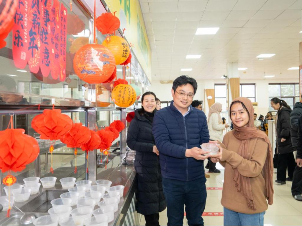 在“共品暖心汤圆”环节,参加此次活动的领导和老师亲手为留学生分发热气腾腾的汤圆,并与留学生亲切交谈,询问其学习生活情况。留学生围坐一堂,品尝着软糯香甜的汤圆,分享着在中国的学习收获与节日感受。多位留学生表达了对中国文化的喜爱和对老师的感谢,现场洋溢着浓浓的团圆情谊。
