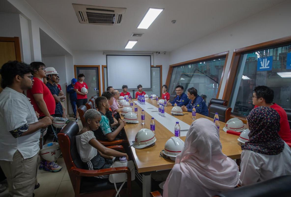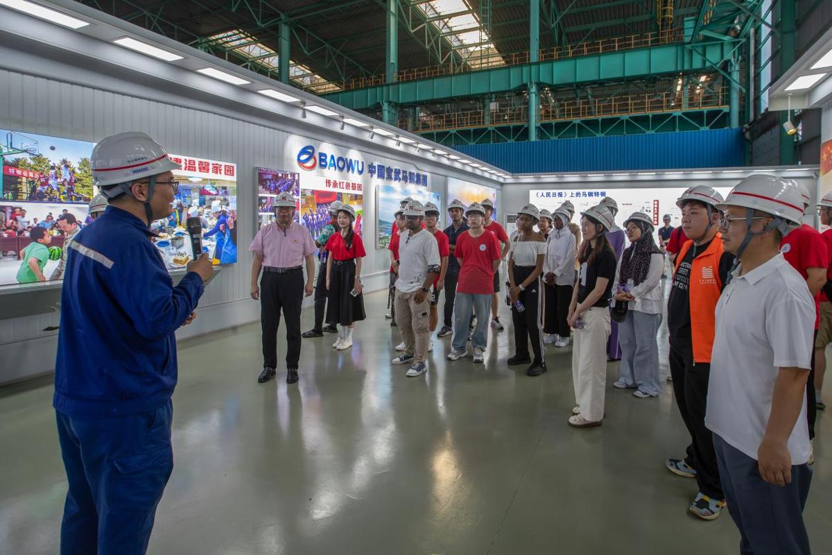 7月4日,艺术与设计学院与国际教育学院联合组建的中外学子暑期社会实践团队走进宝武马钢特钢公司,在钢花飞溅中触摸中国制造的强劲脉搏。