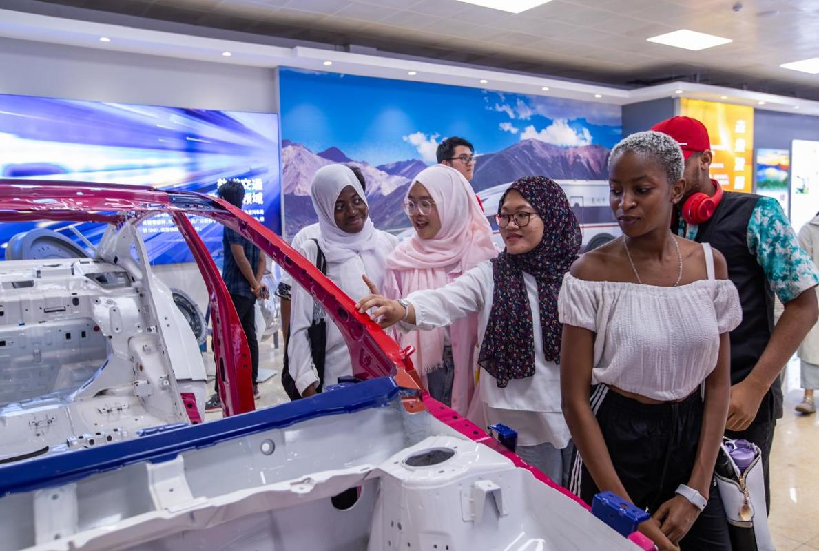 展厅内,车轮轮箍、高速线材、H型钢等特色产品如钢铁森林般矗立。来自津巴布韦的留学生杜宾轻抚高速车轮:“这些钢材支撑起中国高铁400公里时速的奇迹,同时也连接着亚非大陆的铁路梦。”指导教师徐新卫指着产品应用图谱介绍,马钢特钢已实现轨道交通、新能源汽车等高端领域全覆盖,多项技术打破国际垄断。