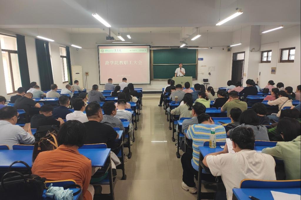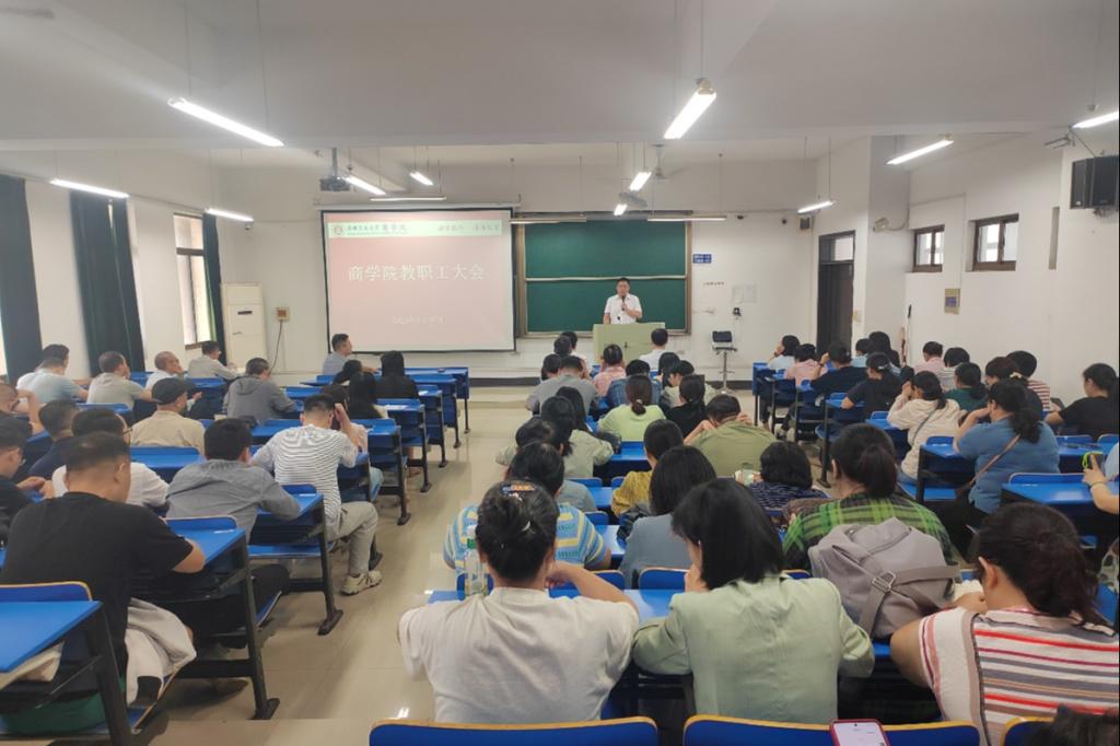 9月30日下午,商学院在汇文楼D507召开2025-2026学年新学期教职工大会。全院教职工参加会议,会议由院党委副书记、纪委书记、副院长蒋磊主持。