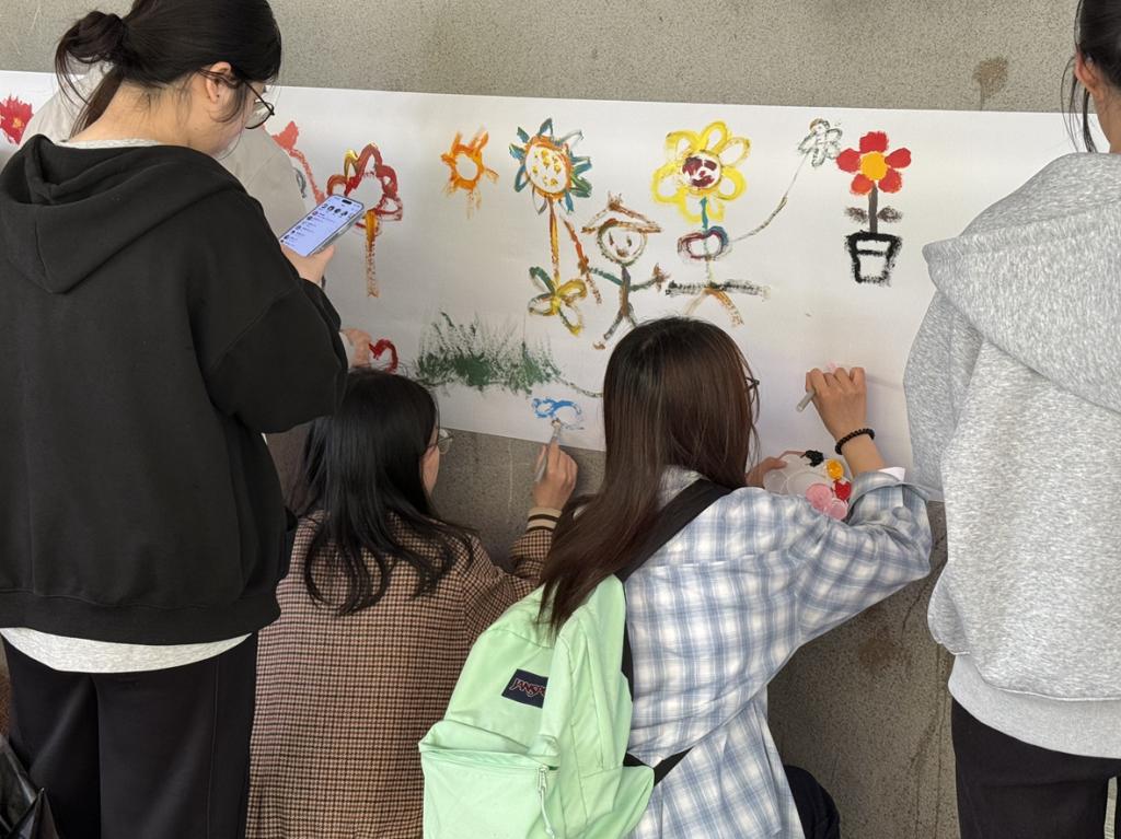 活动以春日为媒、自然为介,将心理健康教育与艺术创作、人际互动深度融合。现场巨幅画布前,同学们挥动画笔,将春日美景、心中期许与生活点滴绘于纸上,用色彩勾勒青春朝气;“情绪折叠”环节中,大家将心愿与烦恼写于纸上折成纸飞机放飞,以独特方式告别焦虑、拥抱希望。此外,寻找同色系穿搭伙伴等趣味小游戏,帮助同学们快速破冰、结识挚友,感受集体温暖,增强学院凝聚力。