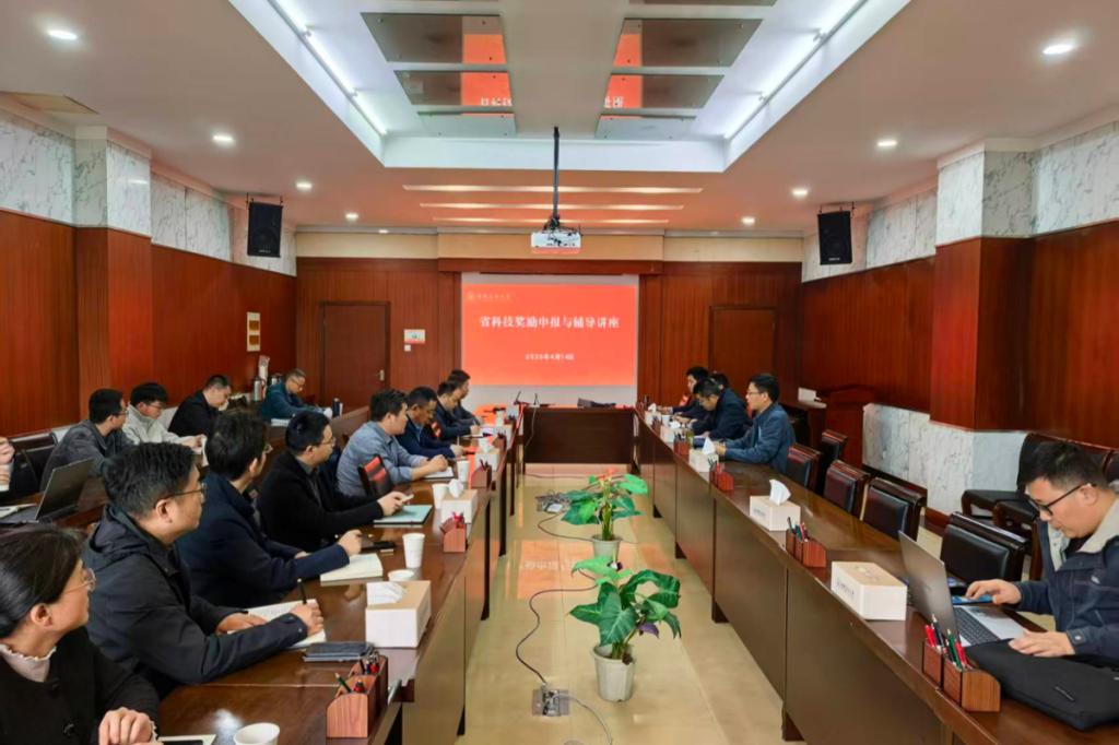 为进一步提高我校教师科技奖申报书撰写质量,扎实推动学校科技报奖工作,科研院于4月14日下午在佳山校区三楼第四会议室组织举办了科技奖申报辅导会,辅导专家、科研院负责同志、2026年科技奖申报教师以及对科技奖申报感兴趣的教师参加了会议。