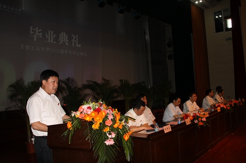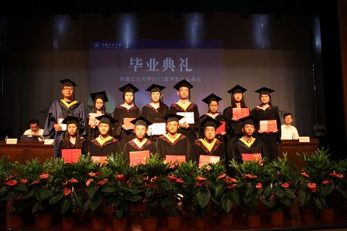 典礼上,校党委副书记汪光阳宣布了2012年荣获“安徽省普通高校品学兼优毕业生”和“安徽工业大学优秀毕业生”荣誉称号的毕业生名单。在喜庆的迎宾曲中,校领导先后为获奖学生代表颁发了荣誉证书,为毕业本科生及毕业研究生代表颁发了毕业证书和学位证书。