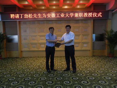 8月21日上午,聘请安徽金鼎企业集团董事长丁劲松先生为安徽工业大学兼职教授仪式隆重举行,校党委书记兰玉杰主持聘任仪式,校领导李家新、林钟高、汪光阳、陈润、葛芦生、张国宝、魏先文、顾明言,督导员董武清,各单位、各部门主要负责人参加了聘任仪式。金鼎企业集团副总经理陈争生先生,金鼎锅炉股份有限公司常务副总经理黄兴华先生及董事会秘书、财务总监夏咏海先生应邀出席仪式。