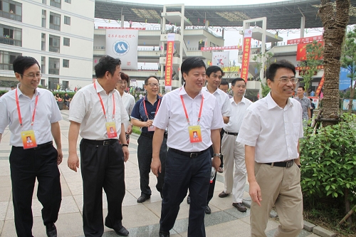9月8日上午是新生报到的高峰期,校党委书记兰玉杰、校长李家新率全体党政领导以及学校办公室、学生工作部(处)、保卫处、后勤与基建管理处、后勤集团等部门负责人,来到两校区迎新报到点,慰问参加迎新接待工作的各单位、部门工作人员,现场检查了各报到点工作情况及学生资助“绿色通道”的办理情况。随后,校领导一行深入到学生宿舍、食堂,走访看望部分新生和新生家长,与他们亲切交流,介绍学校的相关情况,了解他们生活和学习方面的意见和需求。并专门看望了部分困难学生和来校学习的新疆班同学,检查了为新疆同学特设的清真食堂,叮嘱相关部门负责人一定要安排好他们的生活,为他们创造良好的生活和学习环境。