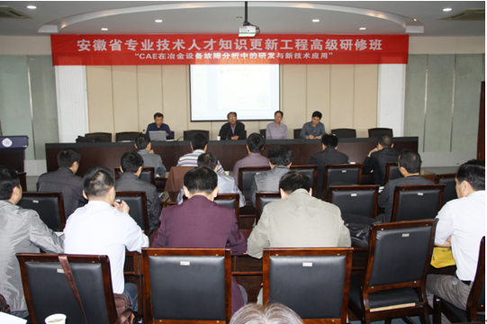 10月12日上午,安徽省2012年专业技术人才知识更新工程 “CAE在冶金设备故障分析中的研发与新技术应用”高级研修班开学典礼在我校会议中心三楼第五会议厅举行。研究生学院院长潘紫微、机械学院院长余晓流、继续教育学院副院长史修理及机械学院相关专家教授参加了典礼。潘紫微致开幕词,机械学院副院长吴文兵主持了典礼。本次研修班由我校继续教育学院、机械工程学院共同承办,共有50多名学员参加了研修班的学习。