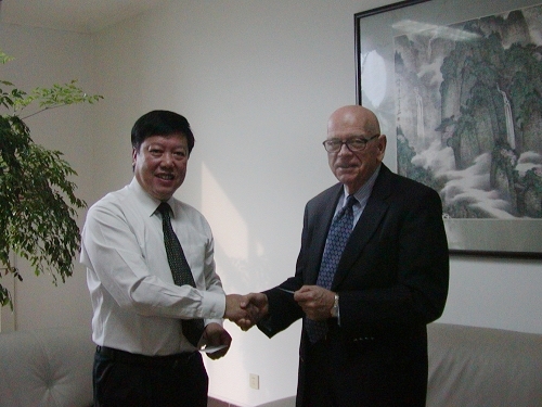 交谈中,李家新回顾了自2003年以来,两校合作与交流的成果及经验,充分肯定了双方的合作成绩和相关部门为此所做出的努力,并希望双方在近十年良好合作的基础上,进一步加大双方学生交流和教师交流,拓展合作的深度和广度。Frank Robert主任转达了Longwood大学校长对李家新校长的亲切问候和邀请,期待李校长适时率团到Longwood大学访问和交流。Robert主任非常感谢我校的盛情接待和周密工作安排,感谢我校校领导和相关部门对两校合作与交流工作的高度重视,并转达了Longwood大学校领导对两校合作取得的成果给予的充分肯定和今后的期待,同时代表Longwood大学外办表示将为两校合作与交流工作做出更多努力。随后,校长李家新代表我校签署了双方学校新一轮的合作协议即双方本科生联合培养双学位项目协议。