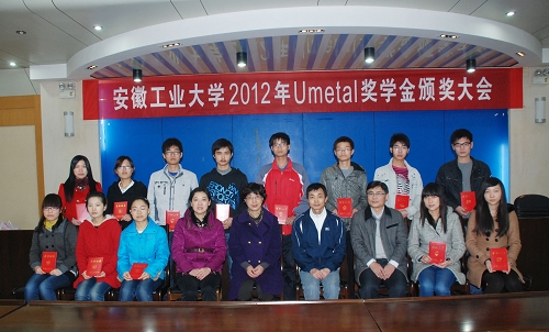 学生工作部部长姚敏宣读了安徽工业大学2012年“Umetal”奖学金”获奖同学名单,获奖同学代表在会上发言,并向企业领导献花表示感谢和尊敬!会议由校学生工作部副部长胡卫东主持。