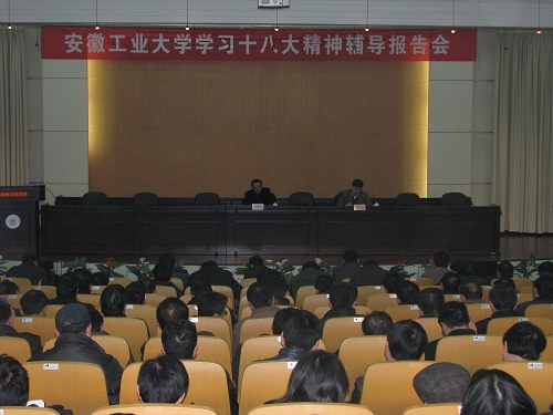 12月25日下午,中共安徽省委宣传部副部长、省社科联党组书记、常务副主席徐东平教授来我校作了学习十八大精神辅导报告会,全面、系统、深入的报告博得全场热烈掌声。报告会由校长李家新主持。在校校领导林钟高、陈润、张国宝,督导员董武清,党委常委、纪委副书记季钟秀,党委常委、组织部部长刘明出席报告会。