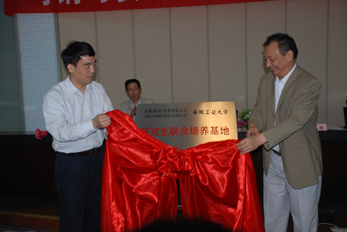 马钢两公司董事长、党委书记顾建国与我校党委书记李辉生为基地揭牌