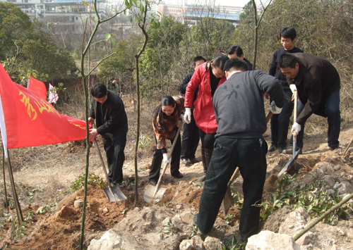 为配合马鞍山市秀山新区建设,美化东校区环境,3月16日下午,校党政领导、机关干部、后勤干部职工、东区管委会干部职工、部分学生和秀山新区建设指挥部负责同志及工作人员等数百人来到了位于东区的桃李山(原癞痢山),参加了植树活动。