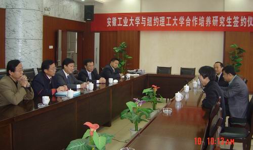 11月10日上午,安徽工业大学与纽约理工大学合作培养研究生签约仪式在校学术会议中心隆重举行。校领导李家新、校外事办与经济学院负责人以及纽约理工大学商学院院长、国际研究中心主任、NYIT全球项目主管刘贤方教授等有关人员出席了签约仪式。