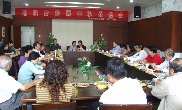 9月29日下午,由校党委统战部、侨联、安工大社区共同举办的港澳台侨属迎国庆中秋茶话会在校会议中心举行,我校港澳台侨属代表和相关单位负责人欢聚一堂,庆祝祖国60岁生日,欢度中华民族的传统节日。党委副书记汪光阳出席会议并讲话,党委统战部、花山区侨联、湖东路街道办事处、安工大社区等单位的负责同志应邀参加了茶话会。茶话会由校党委统战部部长赵保平主持。