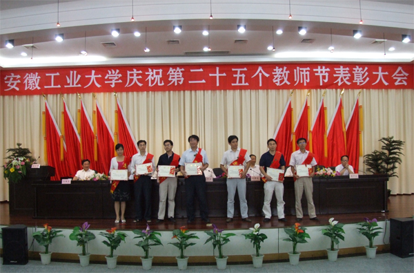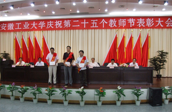 会上,李辉生书记宣布2008年获得国务院、安徽省政府特殊津贴专家名单,2009年安徽省教育系统先进集体、全省模范教师、优秀教师和省高校优秀思想教育工作者名单;林钟高副校长宣布学校2007至2009年度“三育人”先进集体、先进工作者名单;陈润副校长宣布学校2008年青年教师讲课竞赛获奖名单;葛芦生副校长宣布2008和2009年省级和校级教学名师、教坛新秀,及安徽省2008年优秀硕士论文指导老师名单;校纪委张国宝书记宣布了学校2009年“最受学生欢迎老师”评选结果。校领导为获得各类奖项的集体代表和个人颁发了荣誉证书和奖金。学生代表为荣获2009年“最受学生欢迎老师”称号的10位老师们献上了鲜花。