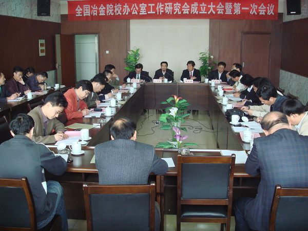 在研究会成立大会上,徐文海简要介绍了成立全国冶金院校办公室工作研究会的初衷和意义,表达了在金融危机冲击下,各冶金院校在国家、地方经济建设和社会发展中的责任意识,期望学校办公室在提高人才培养质量、促进科技创新、提升管理和服务水平、推动学校科学发展等方面发挥更突出的作用。成立大会上,代表们还一致通过了《研究会章程》,选举产生了第一届理事会。根据中国冶金教育学会以及各成员院校的推举,安徽工业大学被推选为研究会第一任理事长单位,校办主任戴玉纯研究员当选为第一任理事长,校办副主任张德昌当选为秘书长。