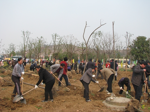 阳春三月,气候宜人。在我国第35个植树节来临之际,3月12日下午,秀山校区主教学楼北面空地旌旗招展,人头攒动。校领导兰玉杰、李家新、林钟高、汪光阳、张国宝、魏先文和机关各部门、直属单位干部职工150多人,一起参加义务植树活动。