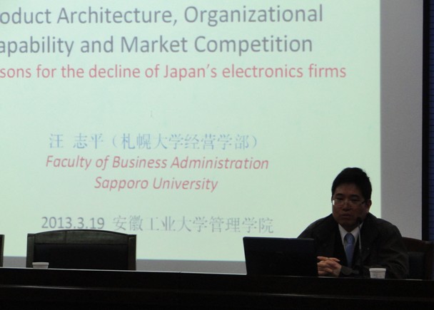 3月19日下午,汪志平教授在东校区振华图书馆学术报告厅作了题为 “产品架构、组织能力和企业竞争:日本家电产业衰落的原因探析”的学术报告。他结合其在国内外的学习工作经验,从日本与中国经济对比开始引入报告主题,深入分析了日本企业当前所面临的困境及发展趋势。报告深入浅出,活泼生动,赢得了阵阵掌声。报告会由管理学院书记李致平主持。管理学院相关专业的本科生、研究生参加了报告会。