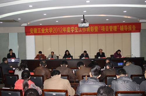 3月29日上午,校2012年度学生工作表彰大会在佳山校区学术会议中心举行,校党委书记兰玉杰、副校长顾明言出席会议并讲话,党委组织部、学校办公室、团委负责人,各学院学生工作副院长和全体辅导员参加了大会。学工部部长姚敏主持会议。