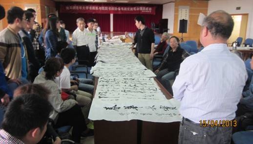 马钢老年大学书画系主任杨翠英、教师曹大元,知名画家杜正林、戈云,青年书法家兰业锋,安工大关工委秦贤适、张凤琴,以及安徽工业大学社团联书画协会代表和工商学院社团联书画协会成员参加了这次活动。此前工商学院中国传统文化教育研究室蔡修权、夏家龙老师对活动进行了悉心指导。(撰稿:韩贤强 审核:阚永明 夏家龙)