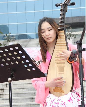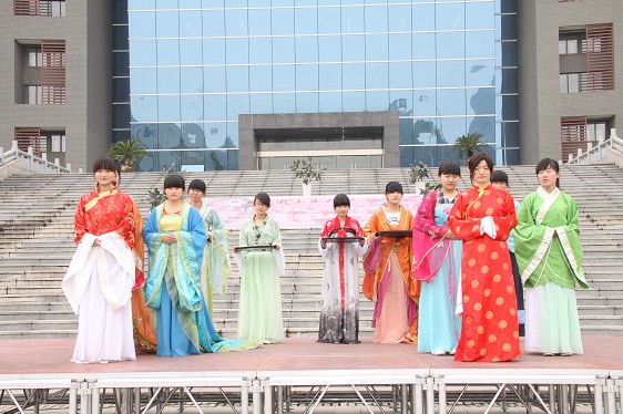 4月20日上午,在我校秀山校区图书馆南门,陆续聚集了许多“古人”。这既不是穿越,也不是在拍古装戏,而是正在举行我校大学生汉服文化展。