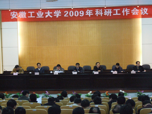 校长岑豫皖在会上作了题为《增强自主创新能力、提高科技服务水平,推动我校科研工作实现新跨越》的主题报告,报告就贯彻落实校第二次党代会精神,以科学发展观为指导,回顾总结了近五年来学校科研工作的成功做法和取得的成绩,深入剖析了安徽加速崛起、区域自主创新和行业振兴发展对我校科研工作提出的要求。他指出,作为一所具有鲜明行业特色,安徽重点建设的以工为主的多科性大学,为安徽区域经济社会发展和行业科技进步做出更大的贡献,是学校的责任所在。针对安徽加速崛起、建设创新型安徽的战略部署和地方主导产业、冶金等行业企业的发展诉求,岑豫皖提出,我校要在支撑区域经济社会发展、服务于主导产业发展、促进创新型安徽建设、推动文化强省建设等方面建功立业,成为“合芜蚌自主创新综合配套改革试验区”建设、创新型安徽建设不可或缺的一员,在安徽建设“高等教育强省”中做出新贡献。