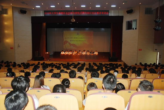 7月9日上午,我校2013年大学生暑期社会实践出征仪式暨西部计划志愿者欢送会在秀山校区大学生活动中心报告厅隆重举行。副校长顾明言,组织部、宣传部、学工部、教务处、就业指导中心、思政部、团委等部门负责人和各学院负责学生工作院领导出席了仪式。社会实践团队队员代表,国家级、省级、校级重点团队指导老师代表和西部计划志愿者共500余人参加了启动仪式。