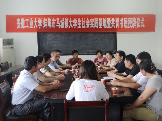 当天下午,顾明言一行赴蚌埠市禹会区偏远乡镇马城镇看望在当地进行“关爱留守儿童”暑期社会实践的机械工程学院师生。在团蚌埠市委和禹会区相关负责人的陪同下与社会实践队员进行座谈。会上,团蚌埠市委和禹会区委有关负责人介绍了蚌埠市和禹会区的有关情况,希望能够与安徽工业大学进一步加强合作和交流。我校团委负责人介绍我校大学生社会实践工作情况。会上,我校还与禹会区马城镇举行了社会实践基地和共青书屋授牌仪式,顾明言颁发了基地铜牌。实践队员们畅谈自己近期的收获,汇报了在实践活动中的所想所感,表示绝不辜负学校期望,发挥专业优势和个人特长,将所学的理论知识应用于实践,服务社会。
