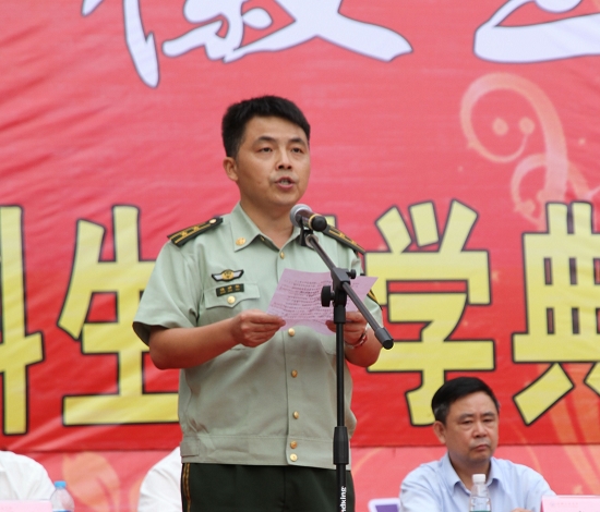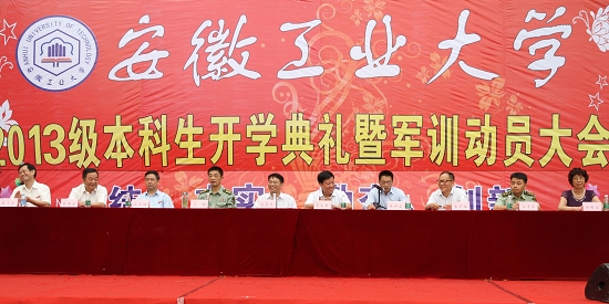 秀山增色,荟灵生辉,9月11日下午,我校在秀山校区教学楼广场隆重举行2013级本科生开学典礼暨军训动员大会。马鞍山军分区参谋长汤晖、武警马鞍山市支队副支队长汪清华、校党政领导出席了大会,武警马鞍山市支队承训教官和全体新生参加了大会。大会由副校长林钟高主持。