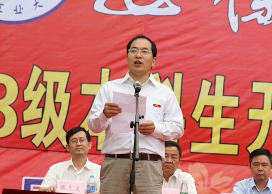 大会在庄严神圣的国歌声中拉开帷幕。校长李家新以“立足新起点,再创新辉煌”为题,发表了热情洋溢的致辞。他对全体新生的到来表示热烈的欢迎,并向他们简要介绍了学校近年来的建设发展成绩,特别是人才培养特色与成果。结合大学的责任和大学学习的特点,他对同学们提出了三点希望,希望同学们加强修养,成为一个品行高洁的人;努力学习,成为一个学有所长的人;积极生活,成为一个身心健康的人,鼓励新生们立足安工大这个新起点,学有所成,再创辉煌。